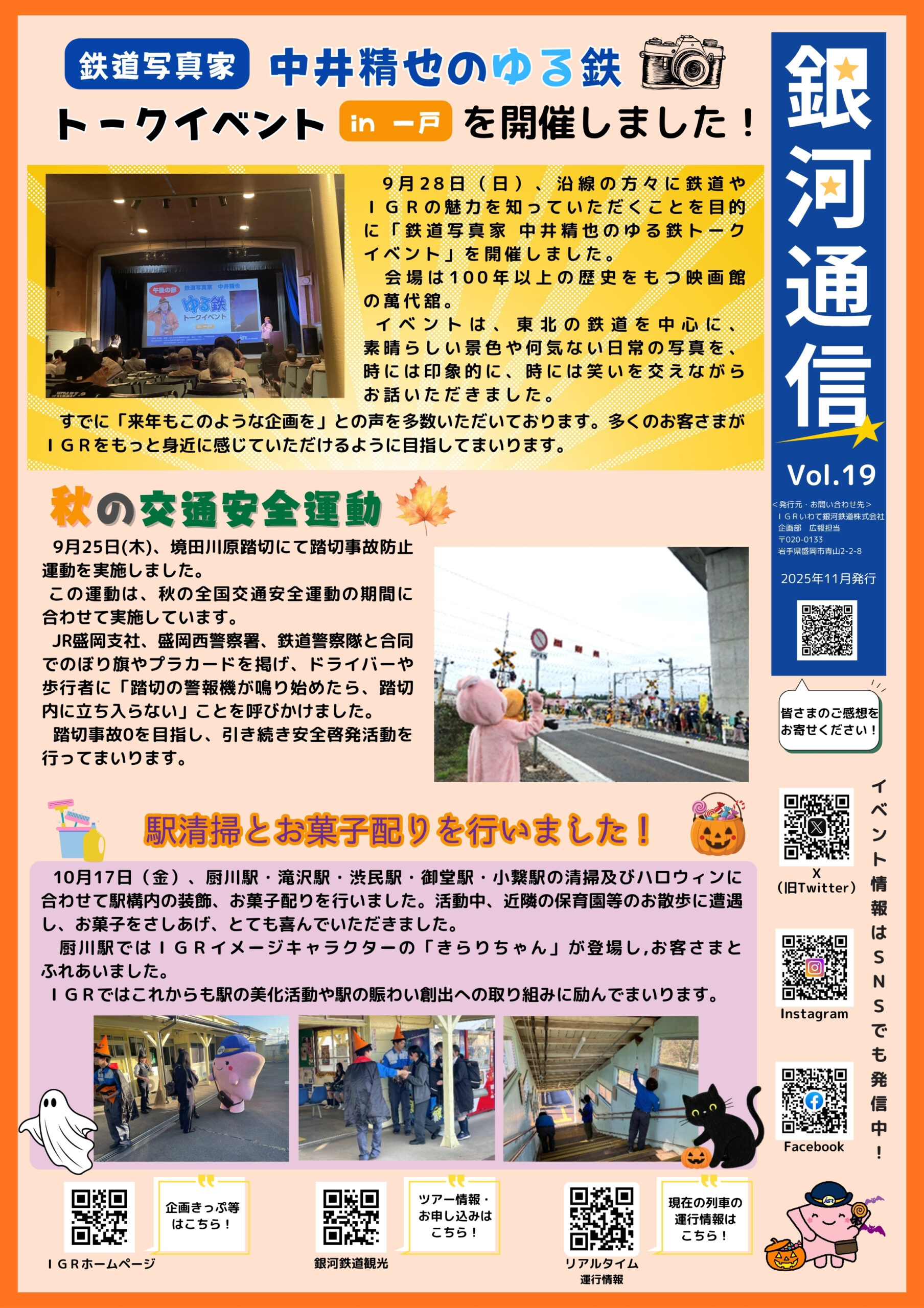 - 2025.10.31お知らせ 「どこでもローカル鉄道」にIGRの映像が公開されました!