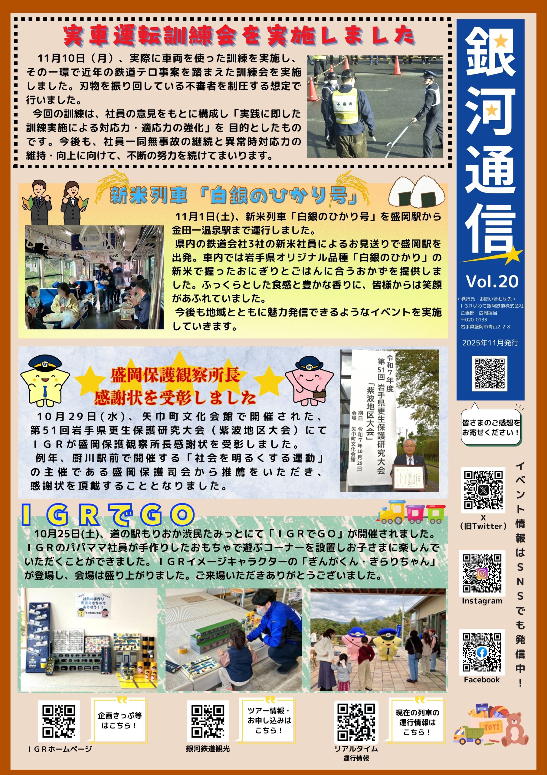 IGRいわて銀河鉄道では、『銀河通信』vol.20を発行しました!