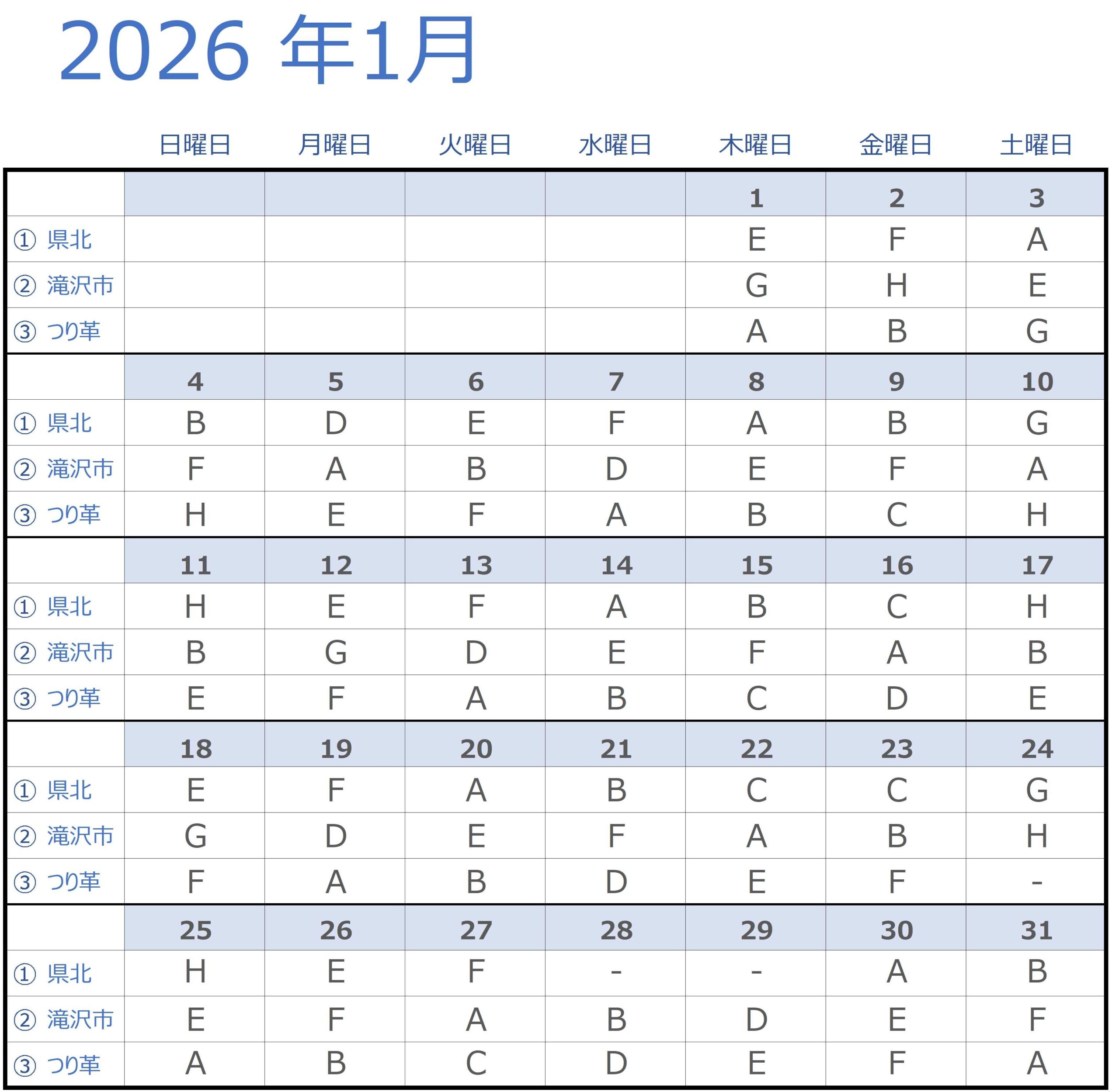 2026年1月以降の運行情報を追加しました。