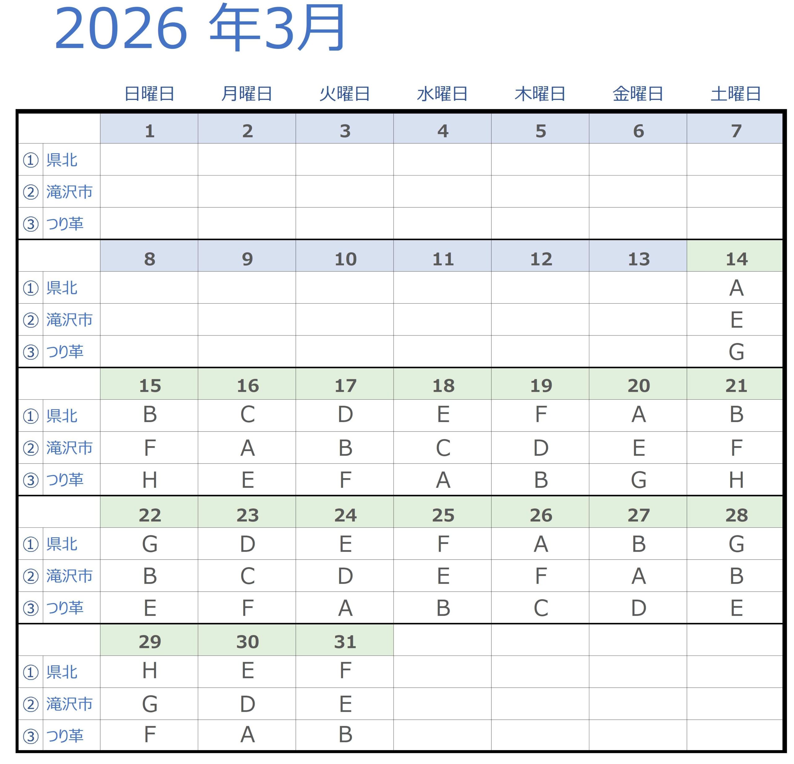 【凡例】※2026年3月14日(土)以降